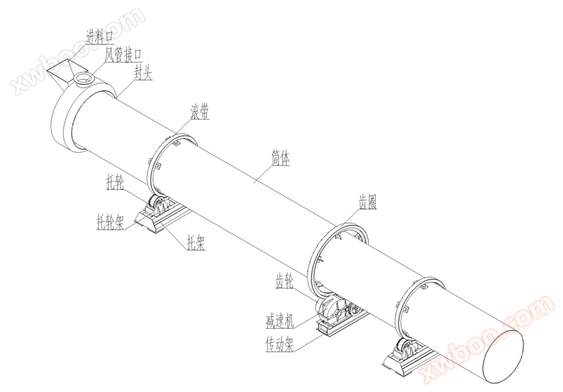 a. قسمت پشتیبانی: قسمت پشتیبانی شامل پشتیبانی جلو و پشتیبانی عقب است که در پایه مربوطه برای چرخش موقعیت سیلندر استفاده می شود. قاب جلو و عقب از قاب، قاب چرخ و قاب چرخ تشکیل شده است. در هنگام نصب، می توانید ارتفاع و زاویه دستگاه را با تنظیم فاصله بین دو چرخ در قاب جلو و عقب تنظیم کنید.